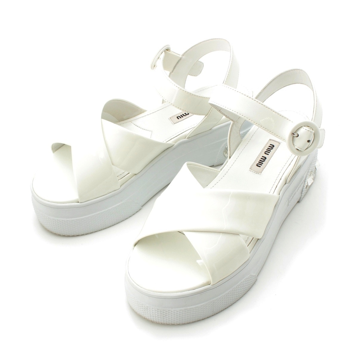 - ミュウミュウ パテント 厚底 クリスタル サンダル ホワイト 37 1/2【中古】