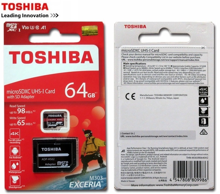 - 64GB microSDXCカード 64GB 東芝 EXCERIA CLASS10 U3 A1対応 高速98MB/s マイクロsd SDアダプタ付 THN-M303R0640A2 4K対応 アプリ最適
