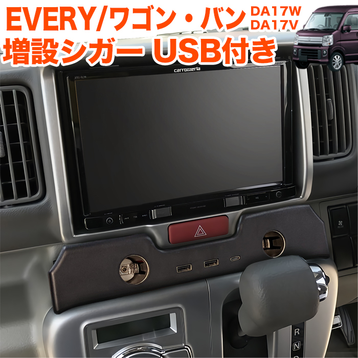 - エブリイワゴン DA17W エブリイバン da17V 増設 シガーソケット USB 急速 充電 DC12V FJ5362