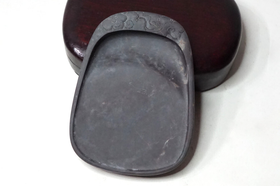 - 書道具/文房具 老抗水厳 端渓硯 硯F7 雲彫刻 唐木箱 時代 古硯 金線 水石 中国古玩 検・文房四宝・金星・金暈