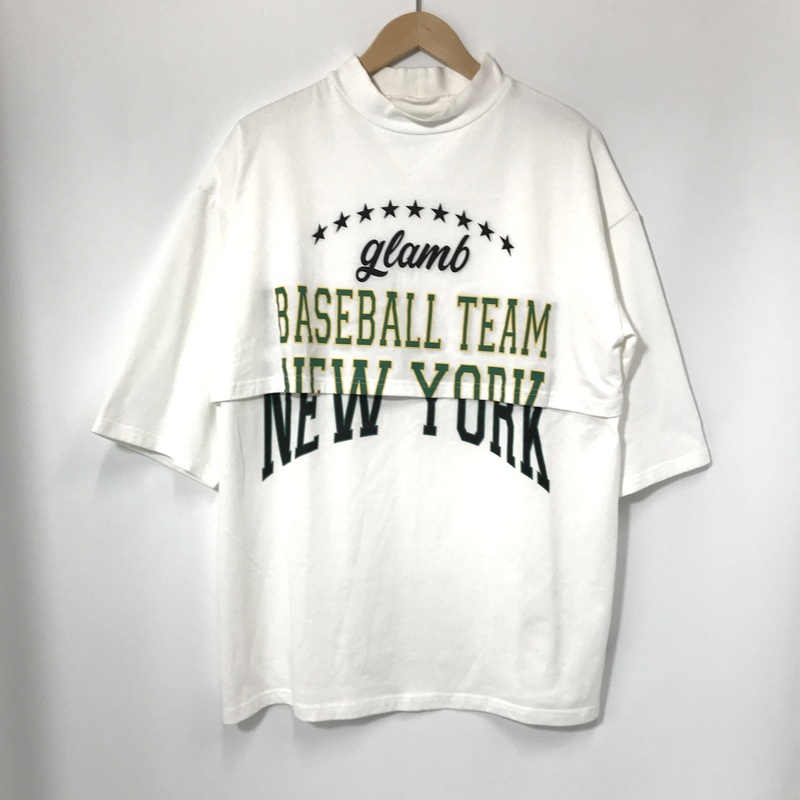 - glamb グラム Tシャツ レイヤードスポーツカットソー 半袖 ハイネック ロゴ ゆるだぼ オーバーサイズ Sサイズ ホワイト トップス A14120◆