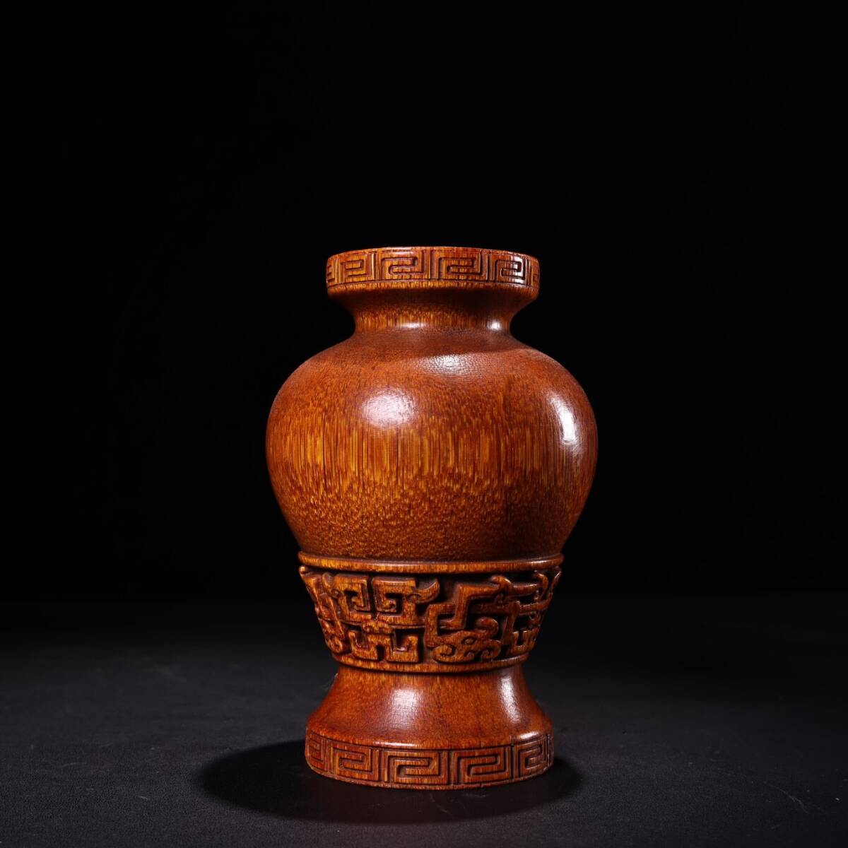 - 『館蔵珍品 角材細密彫 花瓶 箱付 置物 賞物』稀少珍蔵品 古賞物 貴重物品 収蔵品 中国古美術 時代物 古董品