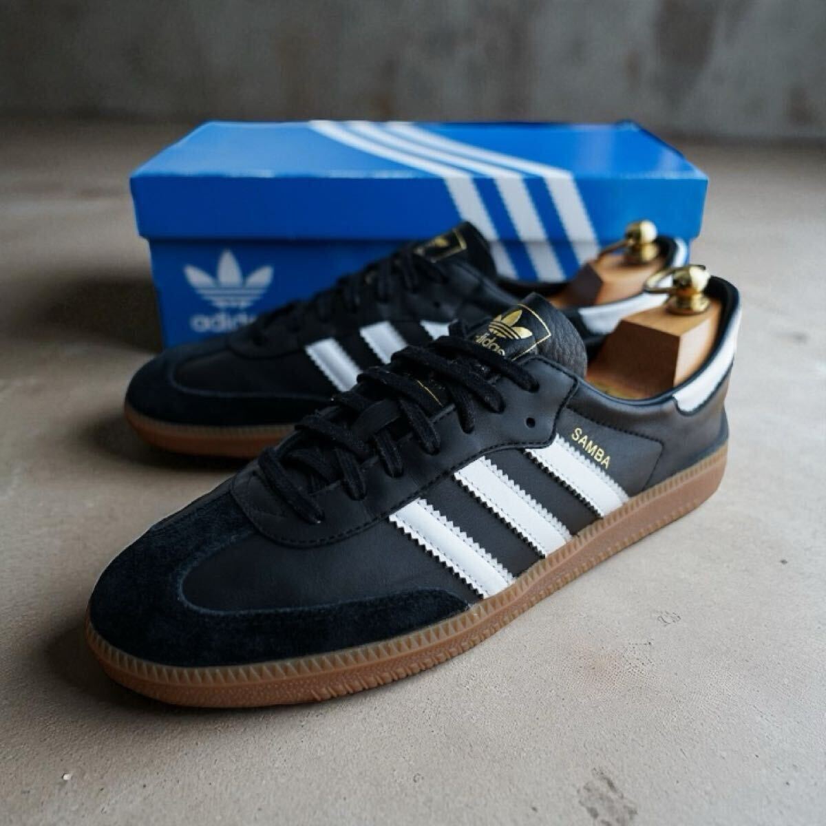 > 【美品/箱タグ付】adidas SAMBA DECON 27.5cm US9.5 ブラック IF0641 黒白 青箱、タグ付 美品 アディダス サンバ デコン 黒 スニーカー