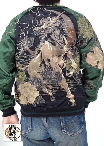 - 粋 麒麟菊牡丹リバーシブルスカジャン◆絡繰魂 B色 Mサイズ 253063 和柄 和風 刺繍 スーベニアジャケット からくり