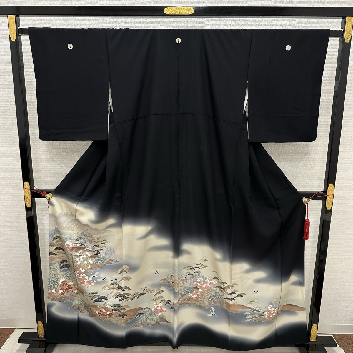 - 黒留袖 裄66 上品な友禅の染め 着物 正絹 五つ紋 袷 広衿 W-3865x