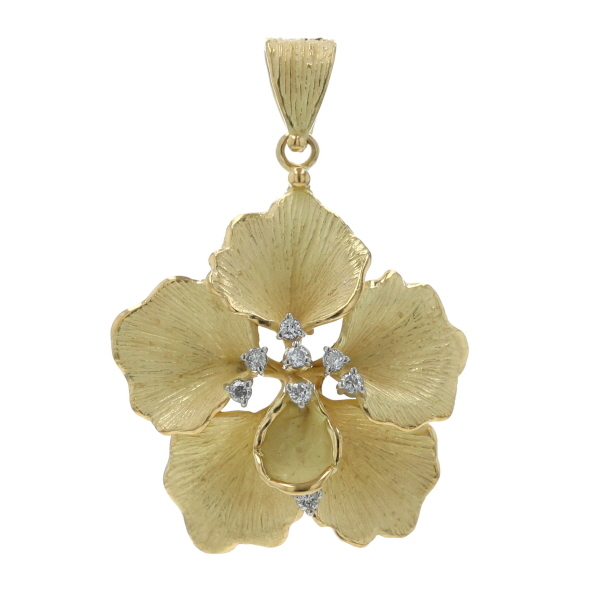 - 檜佐賢治 K18YG Pt900 イエローゴールド プラチナ ペンダントトップ ダイヤモンド 花 モチーフ【新品仕上済】【zz】【中古】