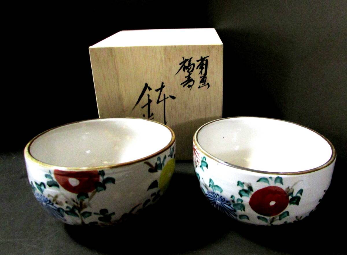 - 有田焼 紀窯 福寿鉢 夫婦鉢 ペア(2客組)口径:(約13.5cmxH7.5㎝)