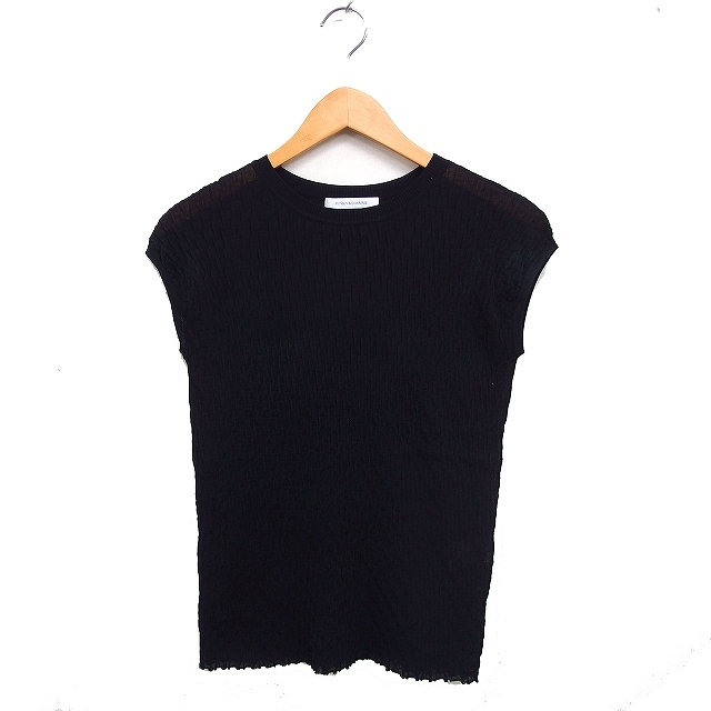 > ピンキー&ダイアン ピンダイ PINKY&DIANNE フレンチスリーブ ニット セーター 丸首 柄編み コットン 綿 38 ブラック 黒 /FT19 レディース