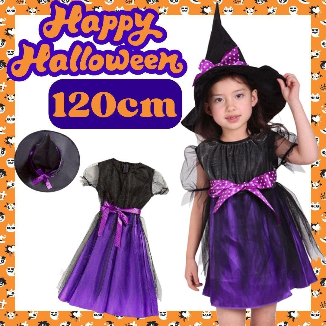 - 魔女 コスプレ 120cm 2点セット 帽子付 ハロウィン ワンピース ドレス 仮装