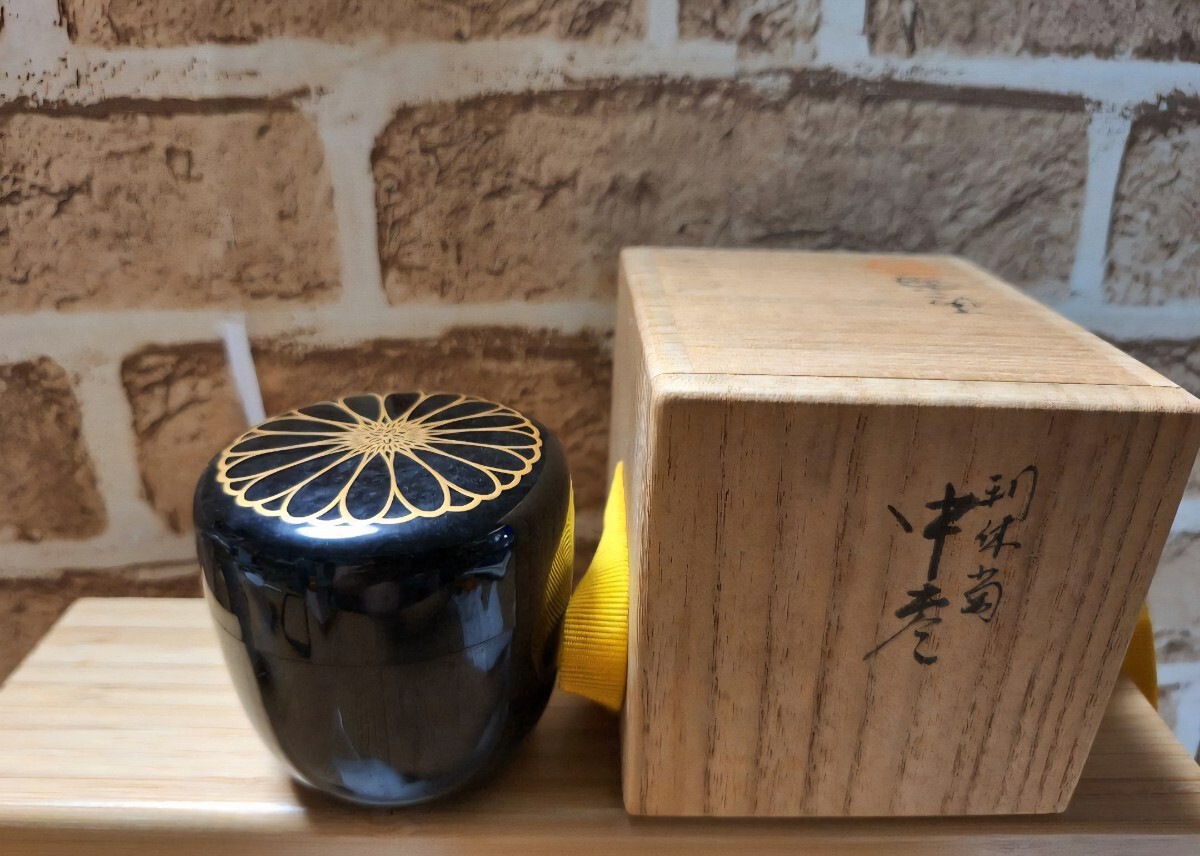 - 茶道具 裏千家 薄茶器(うすちゃき) 茶筒中棗 菊蒔絵 利休好写 茶道 棗 中棗 漆器 工芸品 煎茶道具 茶器
