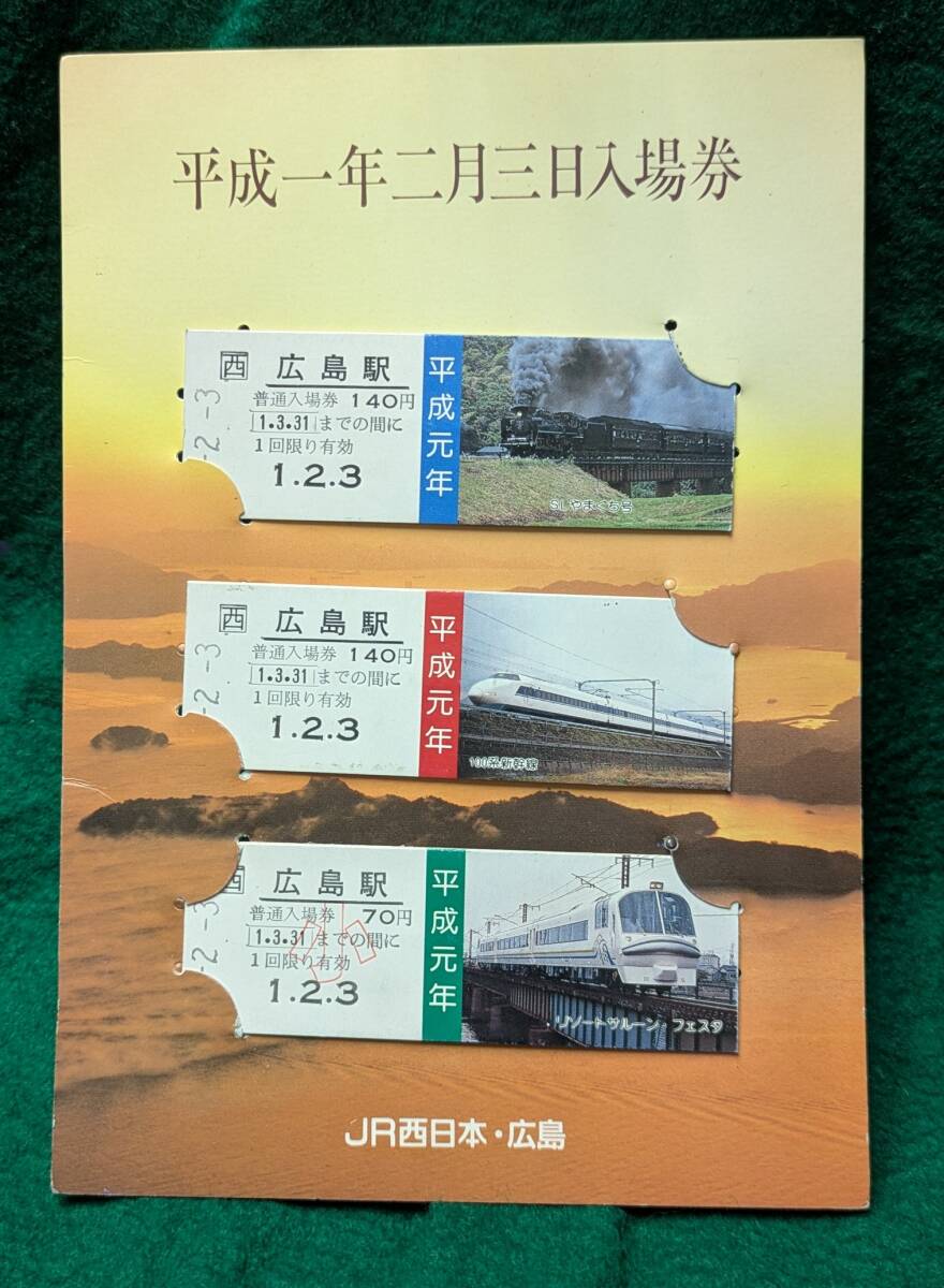 ここクリックで画像一覧で見ることが出来ます。JR西日本・広島平成1年2月3日入場券広島駅送料全国一律ゆうメール180円