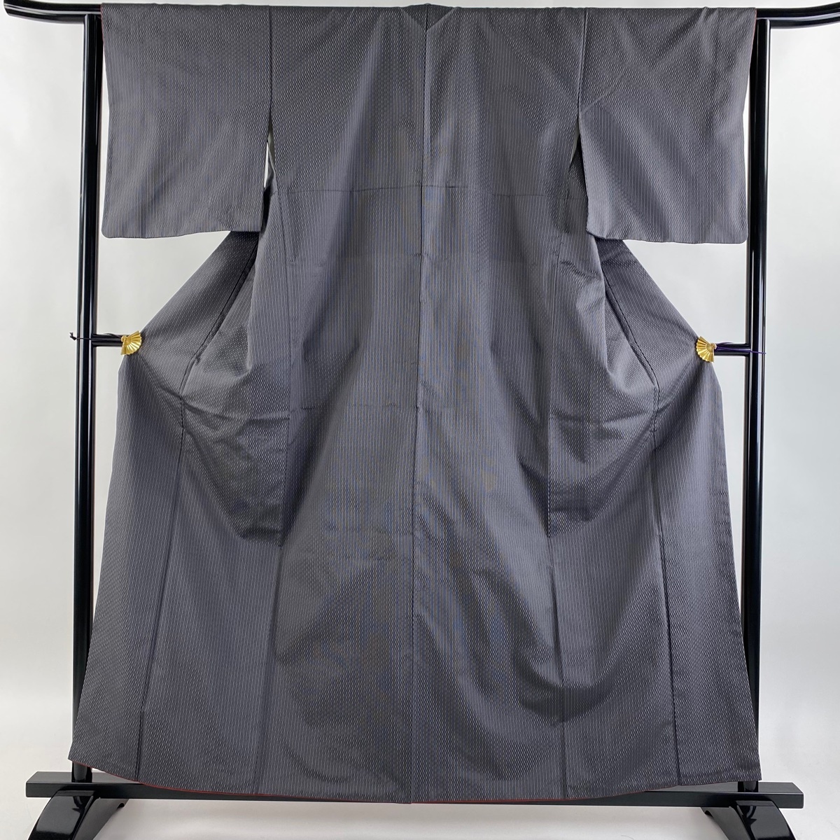 > 紬 身丈158.5cm 裄丈64.5cm M 袷 綾織黄八丈 証紙 幾何学模様 縦縞 黒灰 正絹 逸品 【中古】