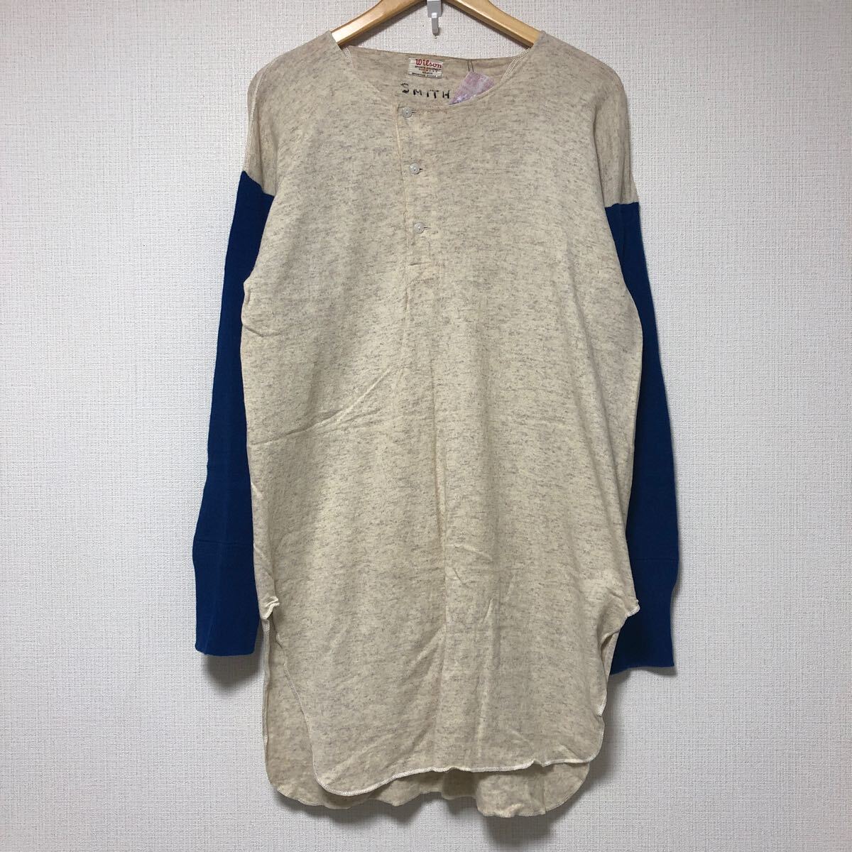 - (k) 50s 50年代 wilson ウール ベースボールTee USA製 トップス カットソー ロング丈 ビンテージ vintage ベージュ×ブルー