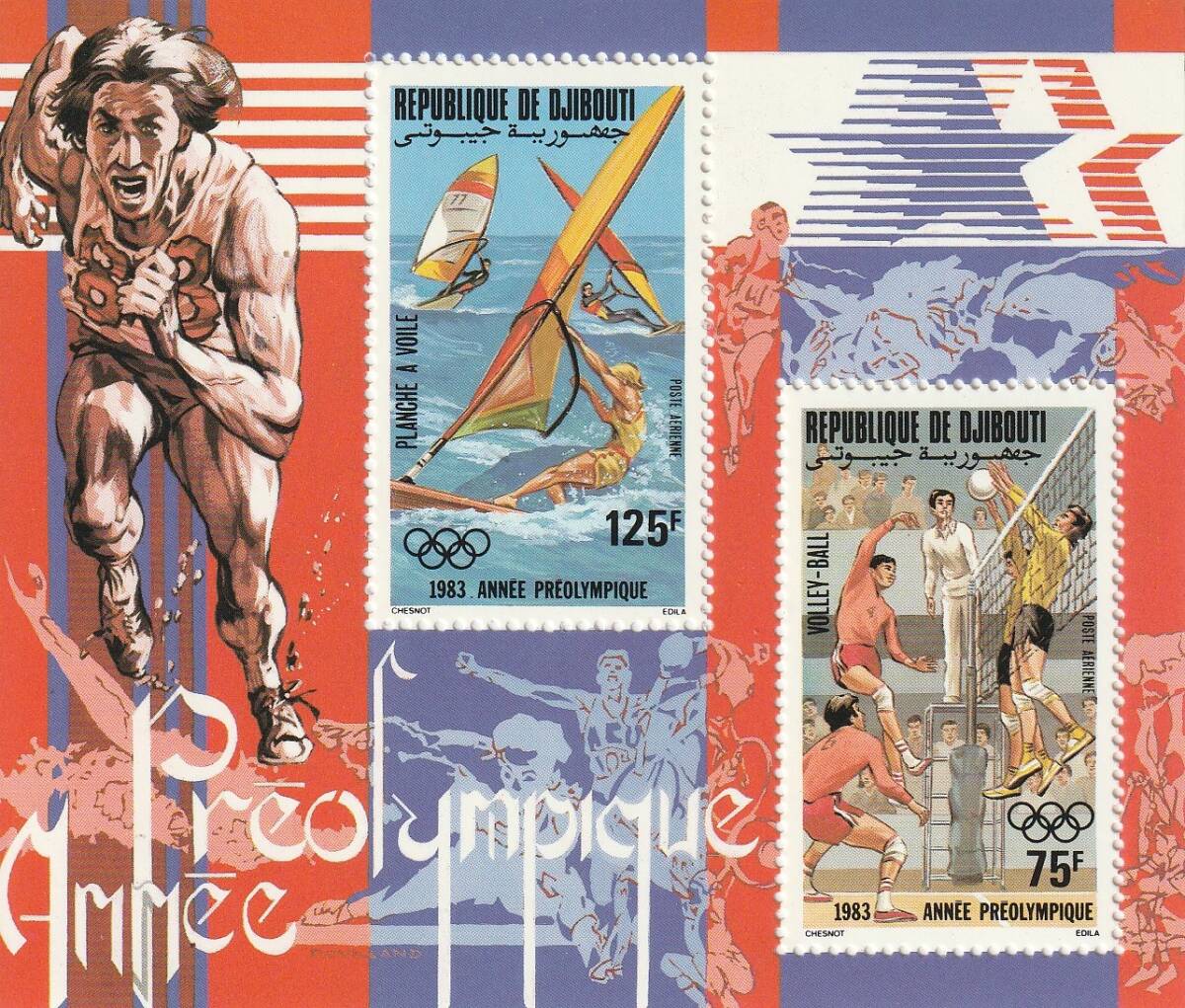 - (ジブチ)1983年オリンピック小型シート、マイケルカタログ評価25ユーロ(海外より発送、説明欄参照)
