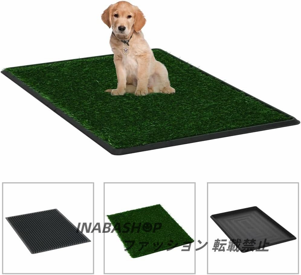 - ペット用トイレ トレイ&人工芝付き グリーン 76x51x3cm