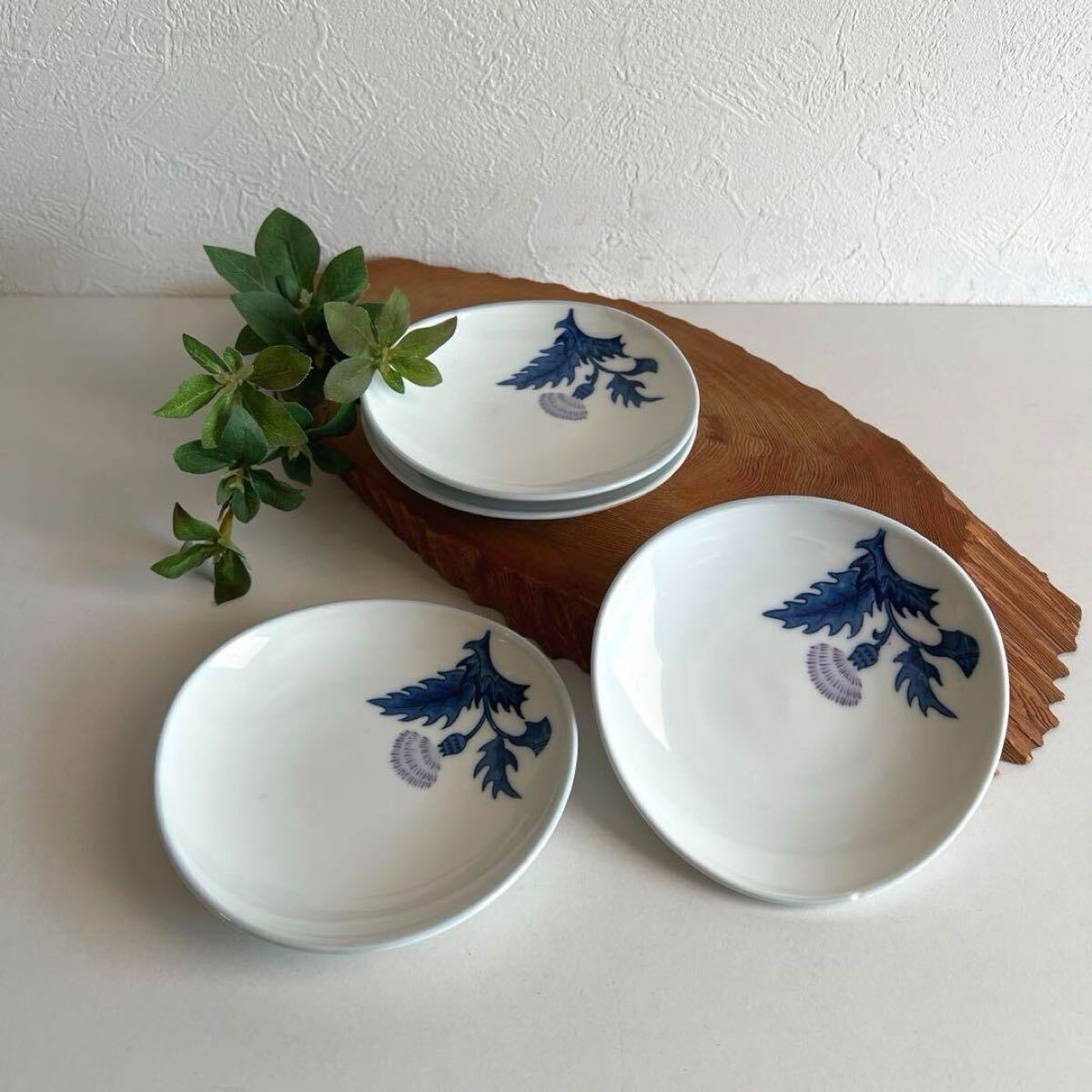 > wasabi k805 和食器 あざみ小皿 4枚セット あざみ 銘々皿 呉須 ネイビー 陶印あり 繊細さと力強さを併せ持つアザミを描いたモダンな逸品