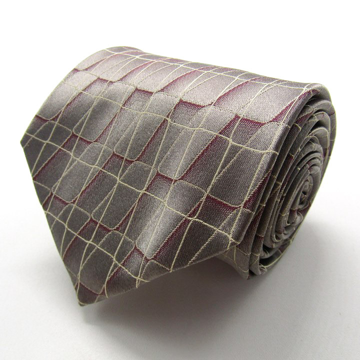 - イヴ・サンローラン ブランド ネクタイ YSL チェック柄 格子柄 パネル柄 シルク 日本製 PO メンズ グレー YVES SAINT LAURENT