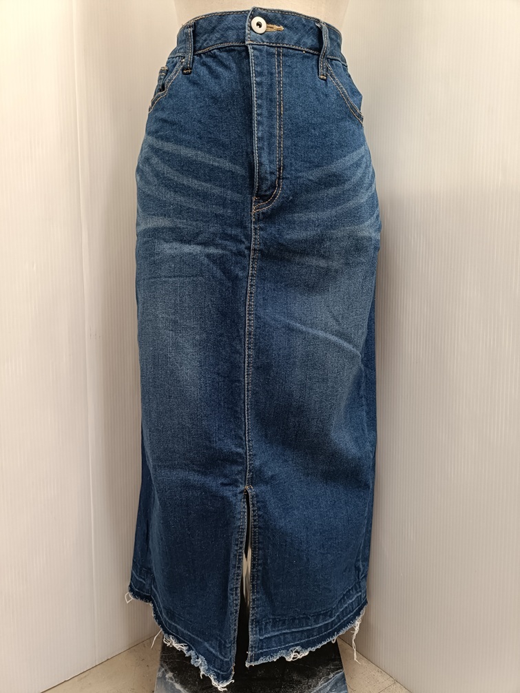 > 【値下げ!即決!】★デニム ロングスカート ダメージデニム スリット ジッパーフライ レディース インディゴブルー サイズLL★