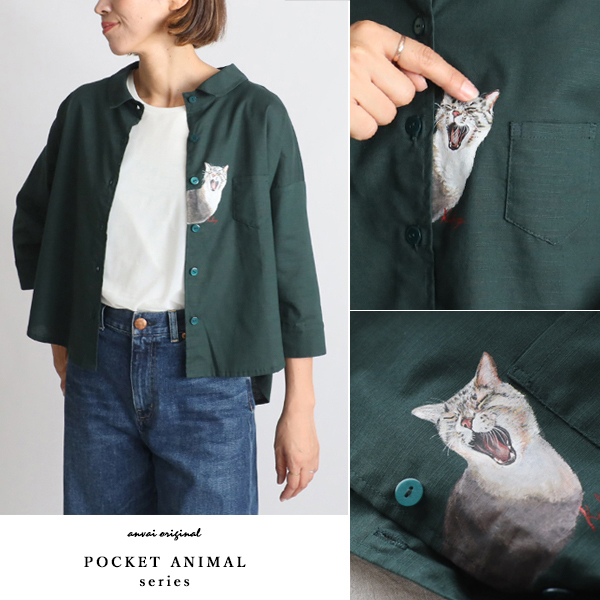 > 芸術の秋 新作 ギマ擬麻コットン 手描き 角襟 燕尾裾 幅広 オーバーシャツ ジャケット 前開き 猫 トラ猫 キジトラF49C