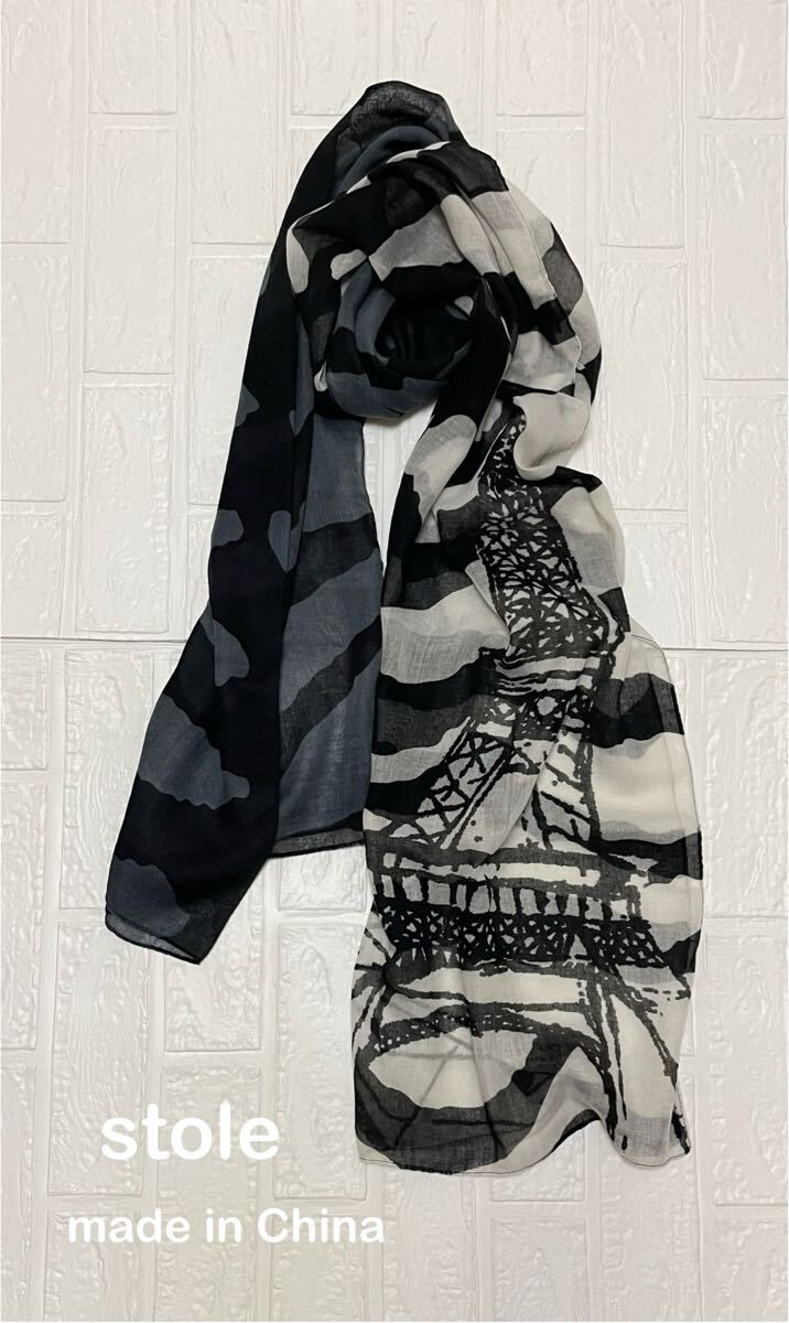 - 【台湾セレクトショップ】 2パターン柄 ストール ブラック×グレー スカーフ