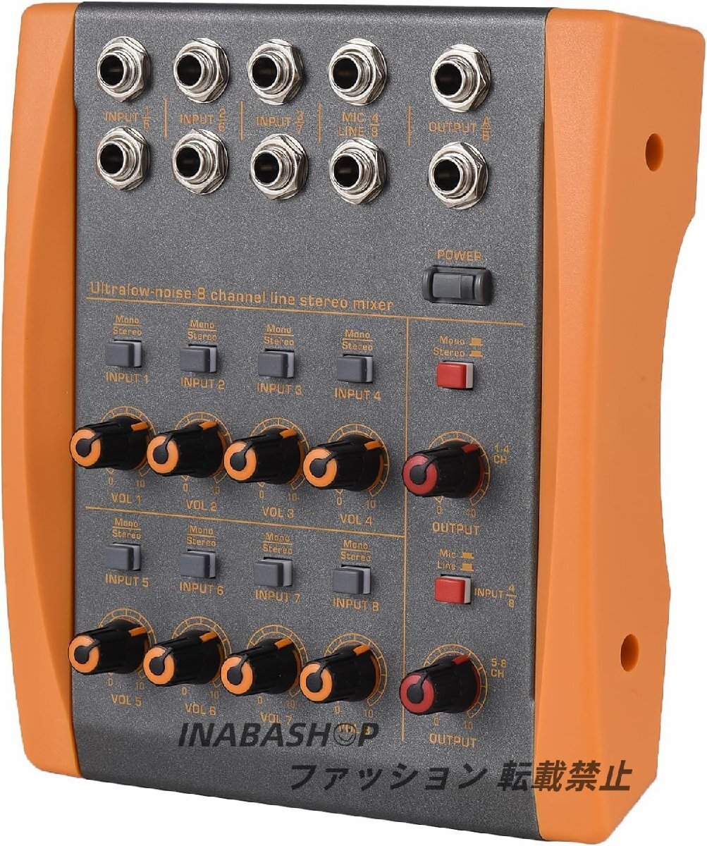 - 8チャンネルミキシングコンソール超低ノイズ ラインステレオミキサー モノラル/ステレオ切替 コンパクトデジタルオーディオギターベース用