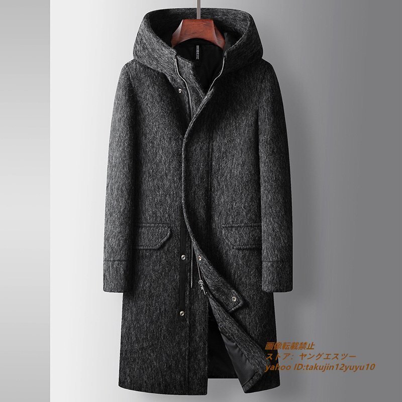 - メンズコート ロングコート 紳士 ウールコート 防寒 フード付き ビジネスコート 厚手 チェスターコート 無地 アウター 黒系 3XL