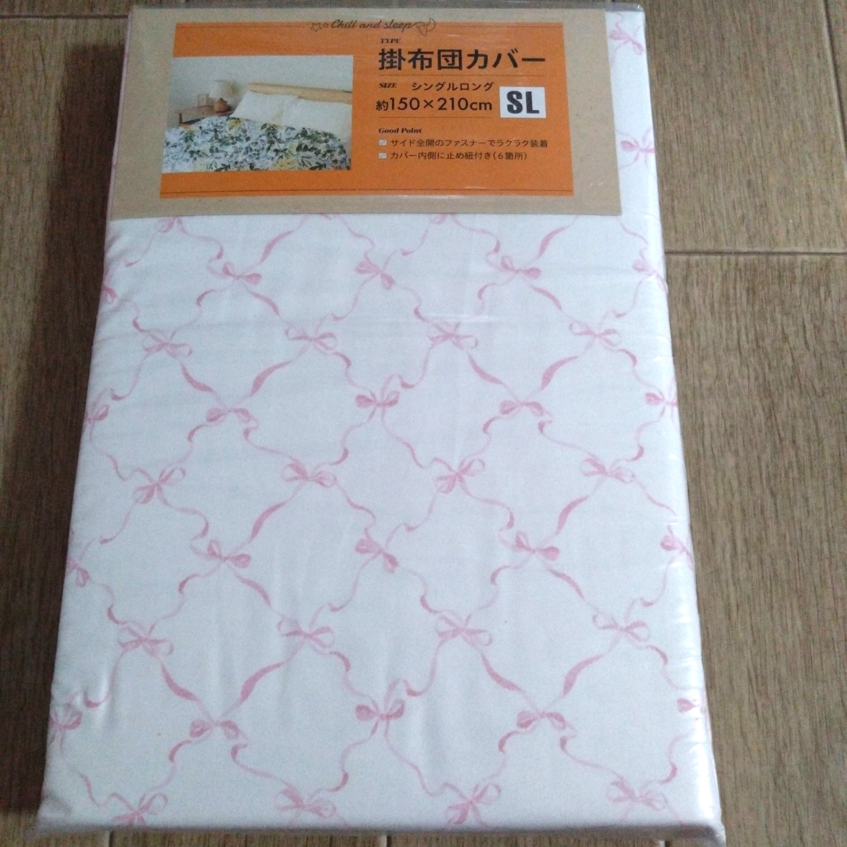 > ⑧掛け布団カバー 約150X210cm シングルロング カバー内側に6ヶ所止めヒモ付き サイド全開ファスナー