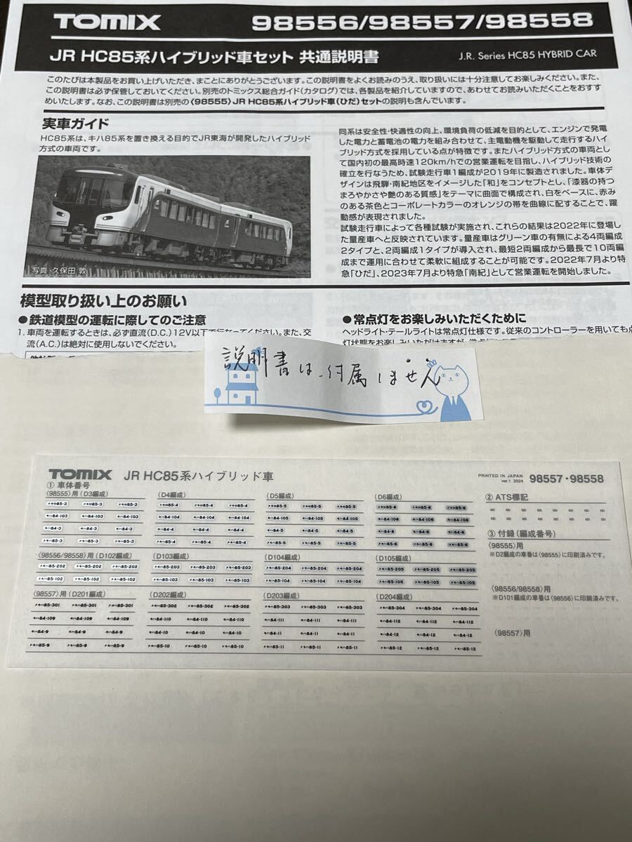 > Tomix 98556 トミックス HC85系【車番インレタ】#KATO#383系#キハ85系#311系#485系#211系#313系#EH200#EF64#1000番台#キハ75#373系
