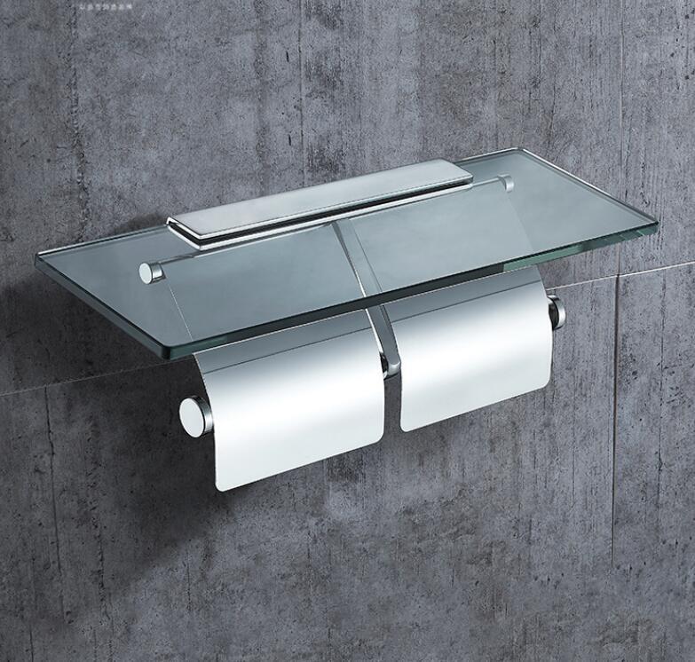 - 人気品トイレット ペーパー ホルダー ガラス 棚付 インテリア 洋風 北欧 トイレ 壁掛け おしゃれ 収納 (ダブルタイプ)