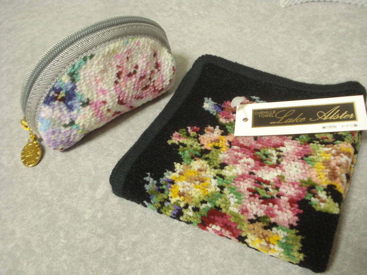 - ☆ Lake Alster レイクアルスター ハンカチ & コインケース☆ シェニール織りタオル 花柄 ポーチ