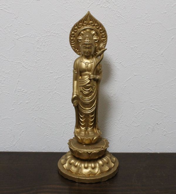 - 仏具屋さんからの買取品 金属製の綺麗な金色の観音菩薩像 ブロンズ 銅仏像 n311