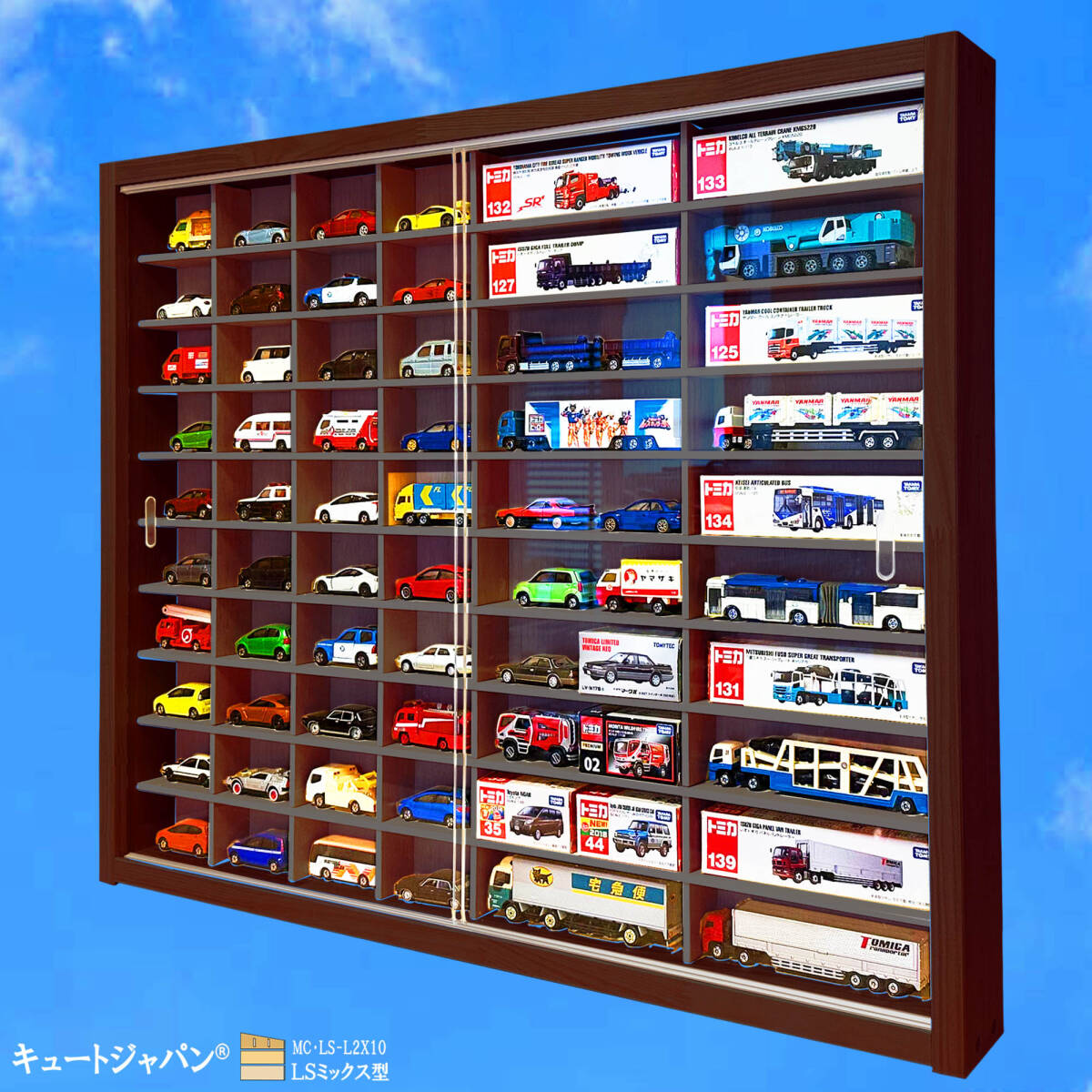 - 送料無料★お片付け習慣 ブラック色全塗装 ミニカーケース トミカ40台・ロングトミカ20台 アクリル障子付 日本製 LSミックス型