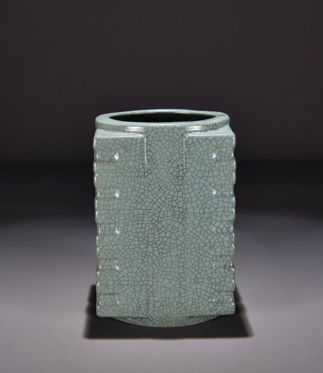- ▽鴻▽ 宋 古陶瓷品 汝窯 天青釉 琮式瓶 陶藝 古賞物 古董品 時代物 稀少珍品 中国古玩 中国古美術