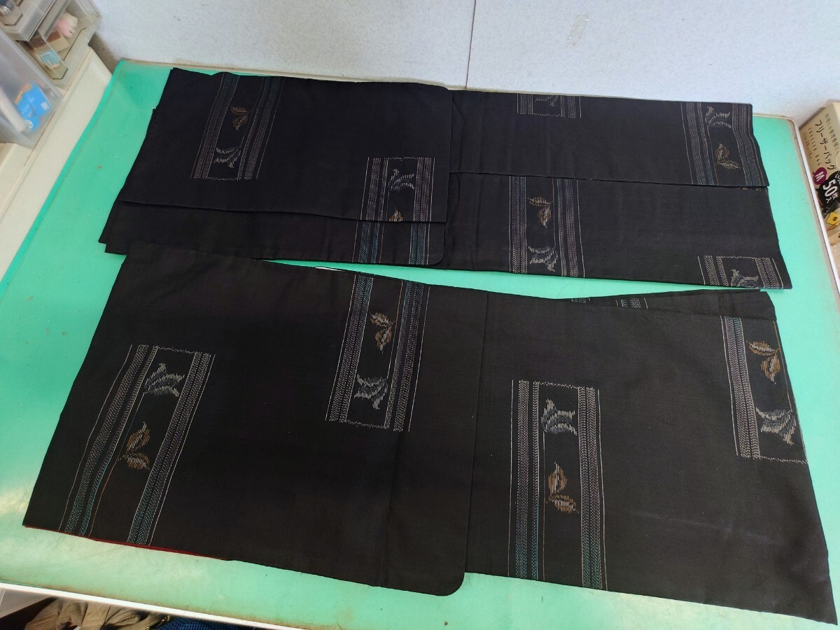 > ●153 高級 大島紬 アンサンブル 道行 セット 花 葉 模様 柄 黒地 同窓会 観劇 美術館 ショッピング オシャレ着 レトロ アンティーク③