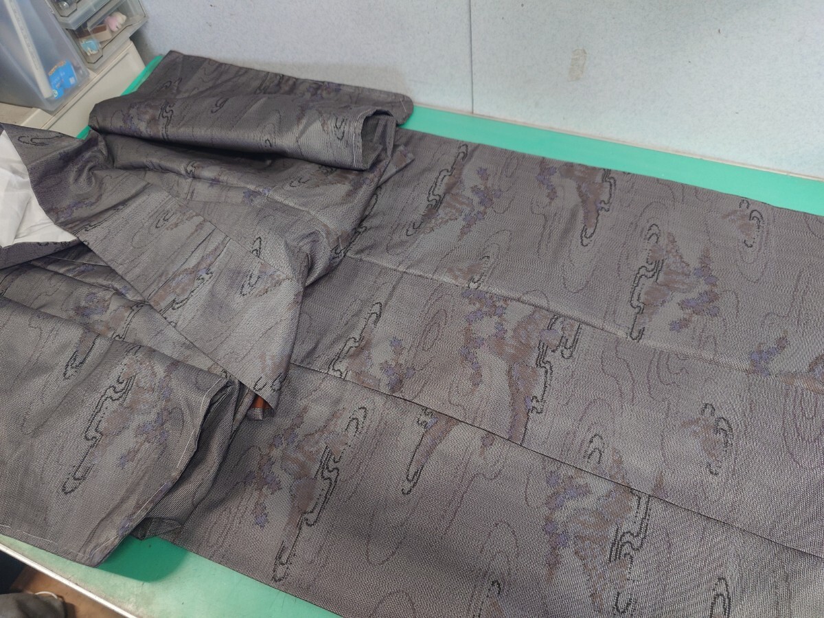 > ●154 高級 大島紬 泥染め? 茶色 水景 景 模様 同窓会 観劇 美術館 ショッピング オシャレ着 レトロ アンティーク おそらく 未使用品 ④