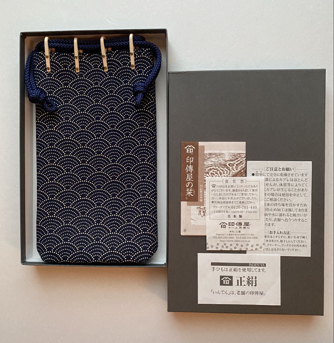 - 新品未使用品◆印傳屋 合切袋(小)マチ付 紺地/白漆/青海波 INDEN-YA インデンヤ いんでんや 正絹 和装小物