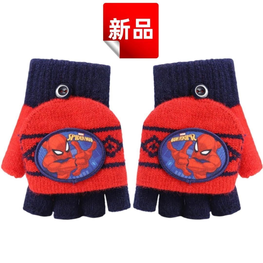 > ★新品★スパイダーマン 子供用手袋 ニット素材 防寒対策 キッズ 男の子 冬用 赤青 フルフィンガー ハーフフィンガー 2way 変身 コスプレ