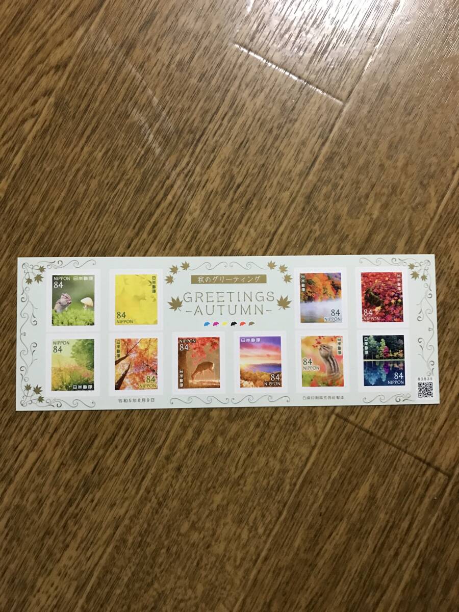- 【即決販売(R5,8発行版)】GREETINGS AUTUMN 秋のグリーティング・シール切手シート (84円×10枚)