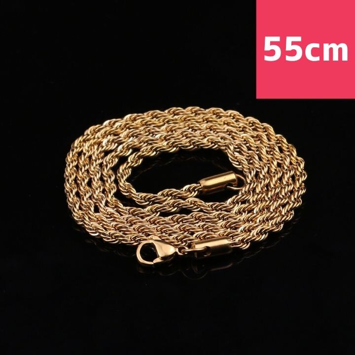 - ステンレス ゴールド 人気 ツイストチェーンネックレス 韓国 3mm 55cm