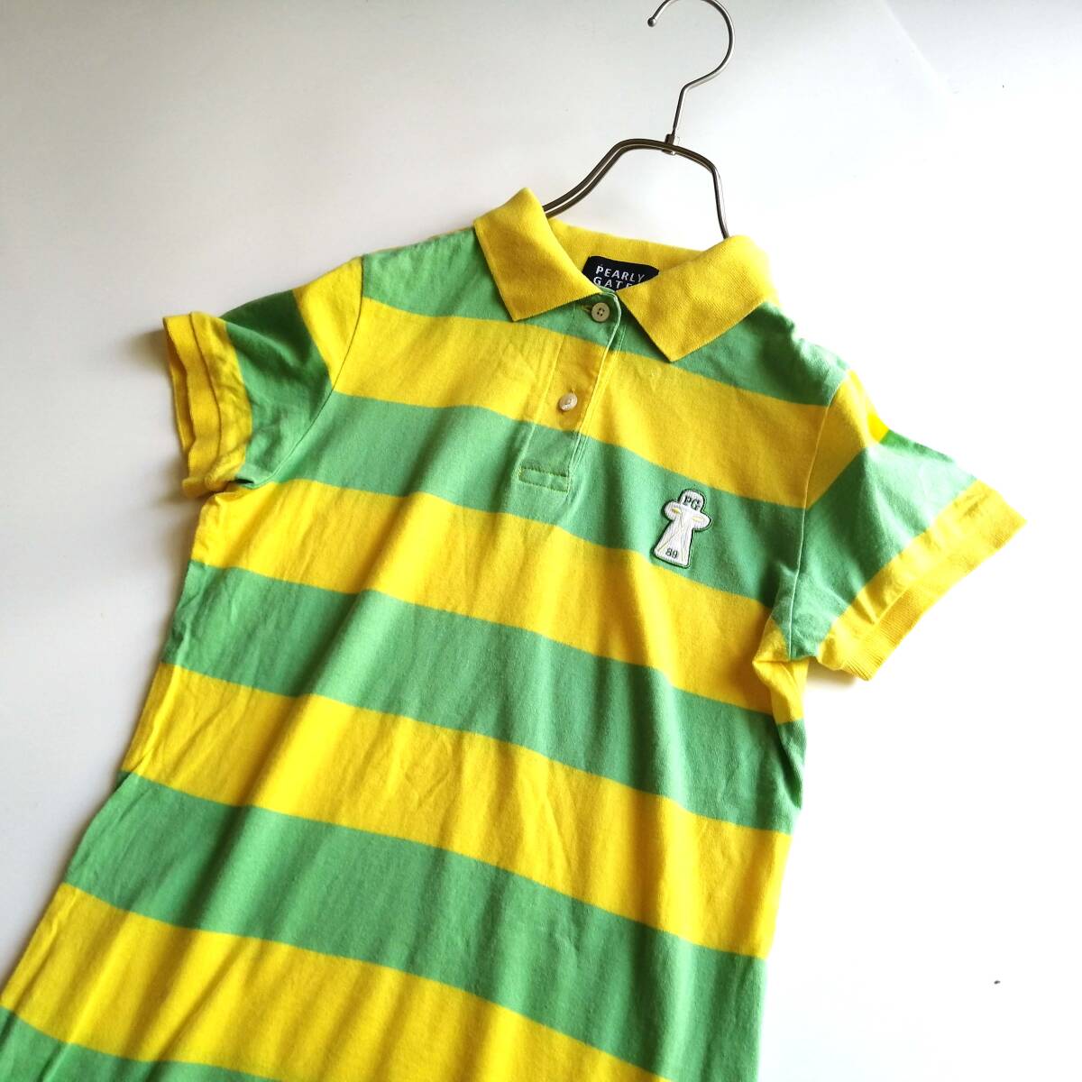 > PEARLY GATES パーリーゲイツ レディース ボーダー 半袖ポロシャツ グリーン×イエロー サイズ0 25-0901fu03【4点同梱で送料無料】