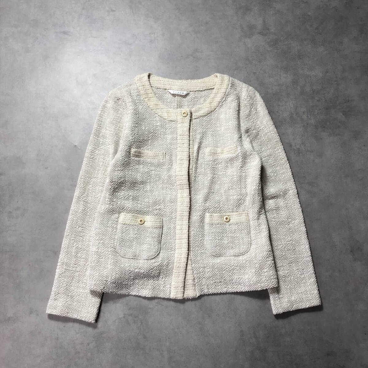 - WH064●trois:ラメニットノーカラージャケット ●F● ベージュ系 日本製 セレモニージャケット トロワ