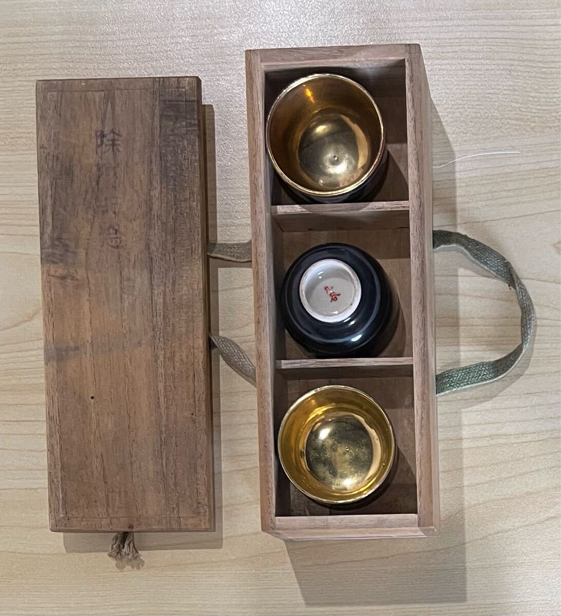 - 除隊記念 九谷焼 ぐい呑3客 金襴手 箱付き 酒器 お猪口 おちょこ 食器 酒杯 酒盃