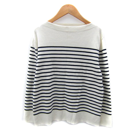 > 23区 オンワード樫山 ニット カットソー 長袖 ボートネック ボーダー柄 40 L 白 ホワイト 紺 ネイビー /SY42 レディース