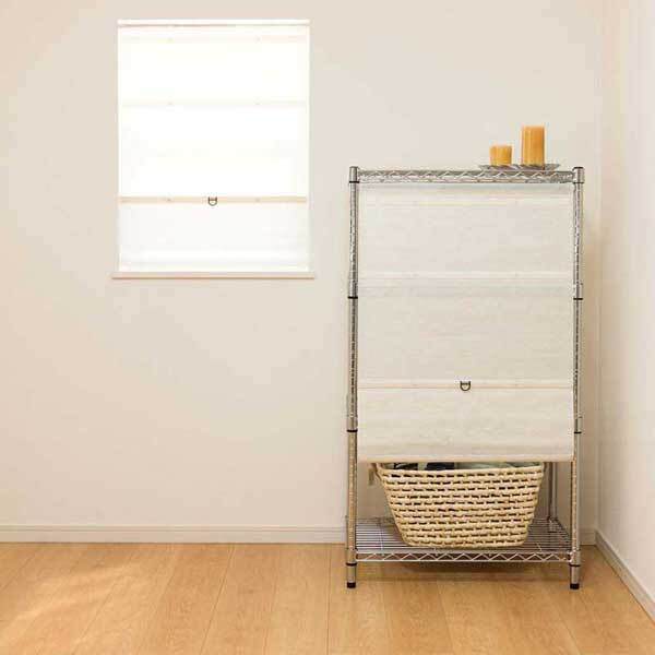 - コードレス ローマンシェード カーテンレールに取付 ねじ不要な突っ張り取付 フックで取付 無地タイプ ●幅60×高さ120cm ナチュラル