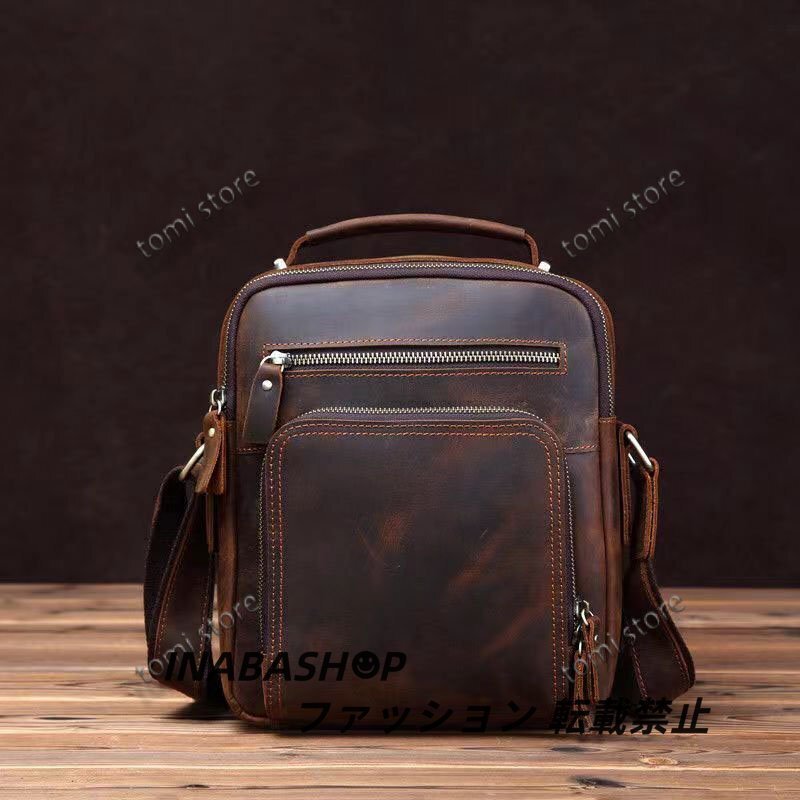 - 新品 本革 ショルダーバッグ メンズ アンティーク 斜め掛け鞄 メッセンジャーバッグ 2室 ヌメ革 本革 牛革 レザー 縦型 iPad収納