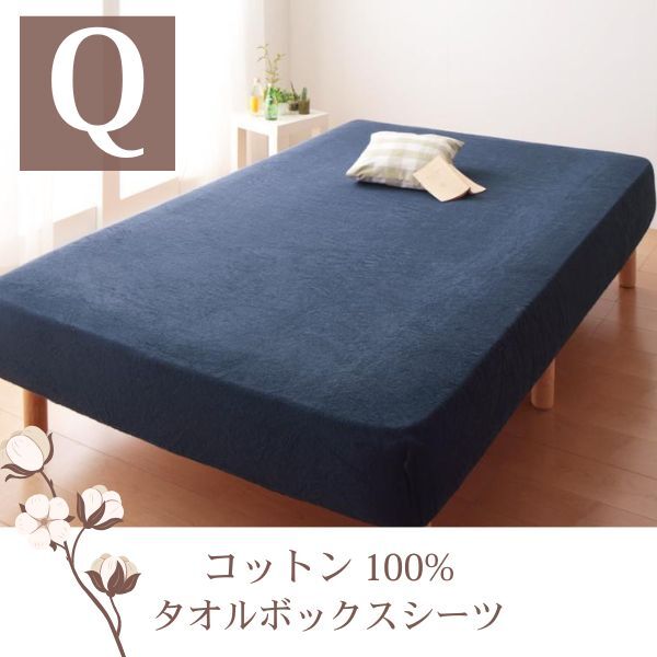 - ザブザブ洗えて気持ちいい!コットンタオルのベッド用ボックスシーツ 同色2枚セット クイーン ミッドナイトブルー