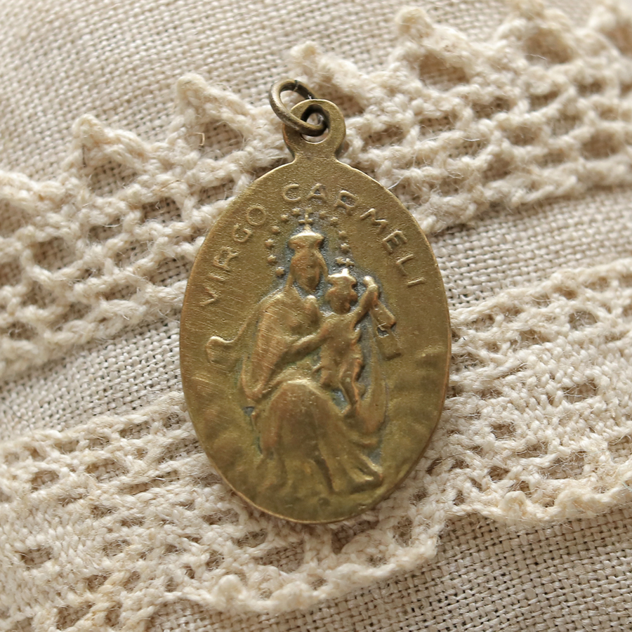 - フランス アンティーク【聖カルメル山の聖母】キリスト 聖母マリア カトリック メダイ/チャーム メダル ロザリオ キリスト/4-F