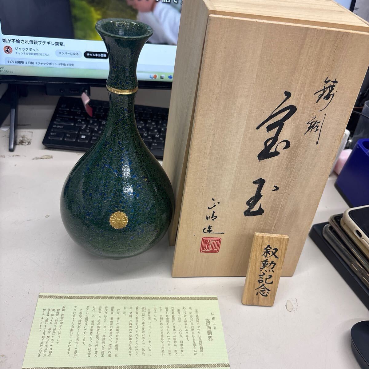 - 花瓶 高岡銅器 銅製 宝玉形 叙勲記念