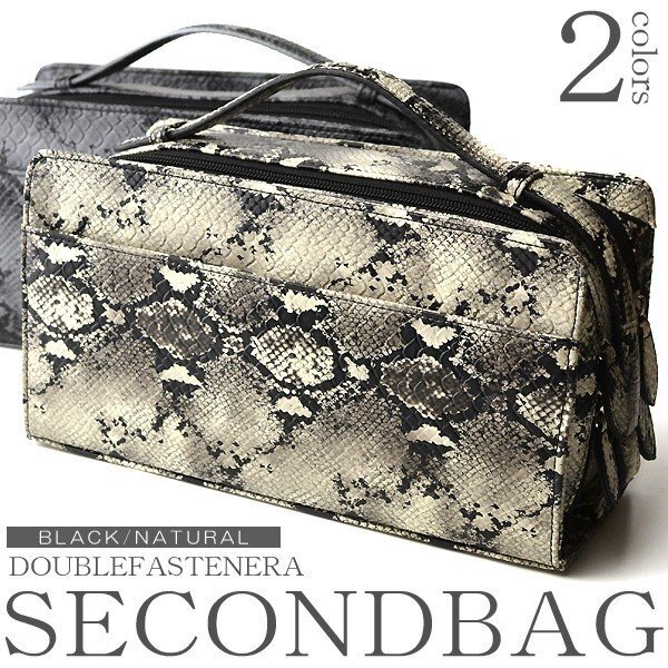 - フェイクレザーパイソン柄ダブルファスナーセカンドバッグ■No.2042H■メンズポーチ■ナチュラル×1個