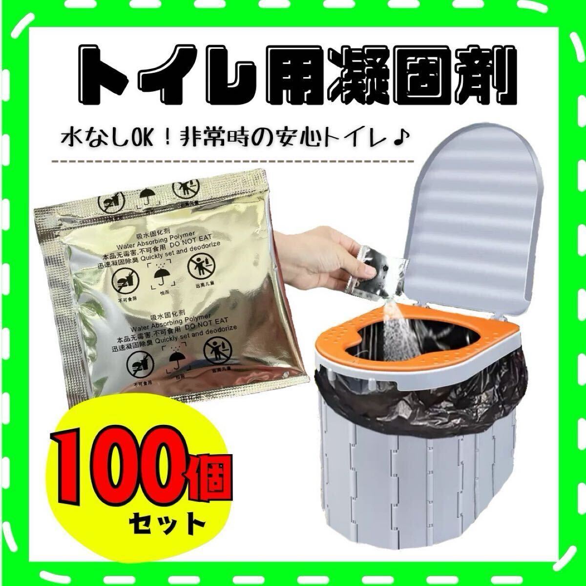 - 携帯トイレ用凝固剤 100個セット 防災グッズ アウトドア用品 非常用トイレ